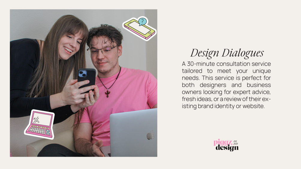 Introducing Design Dialogues, a 30-minute consultation service tailored to meet your unique needs. This service is perfect for both designers and business owners looking for expert advice, fresh ideas, or a review of their existing brand identity or website.
